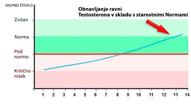 Diagram, ki prikazuje obnovitev ravni testosterona po jemanju Deluron.
