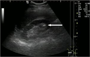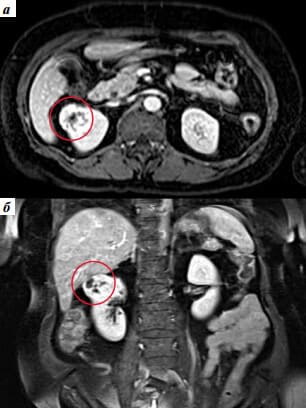 - Разбира се. Първият случай е свързан с камъни в бъбреците. С мен се свърза 27-годишен мъж с болка в дясната страна която започва от гърдите и завършва някъде в областта на пикочния мехур. Болката се проявяваше с кратки спазми, конвулсии, студена пот и се появяваше на вълни. Изображението показва наличието на 19 мм камък, заседнал в горната част на бъбрека. Предписахме Nefro Aktiv . за разбиване на камъни в бъбреците. В рамките на два дни от използването му камъкът започна да се чупи и излезе напълно за една седмица. Пациентът не чувства дискомфорт.