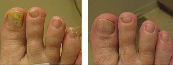 Uklanja spoljašnje simptome na stopalima i čisti telo iznutra i tako potpuno uklanja gljivice sa noktiju. Rizik od komplikacija opada na nulu za prvih par dana od početka primene. Samim početkom ovog tretmana, pacijent više nije u rizičnoj grupi. Ovaj tretman uklanja ćelije gljivica nakupljenih u krvi i unutrašnjim organima. Oštećenja koja su pacijenta ubijala iznutra odmah prestaju.